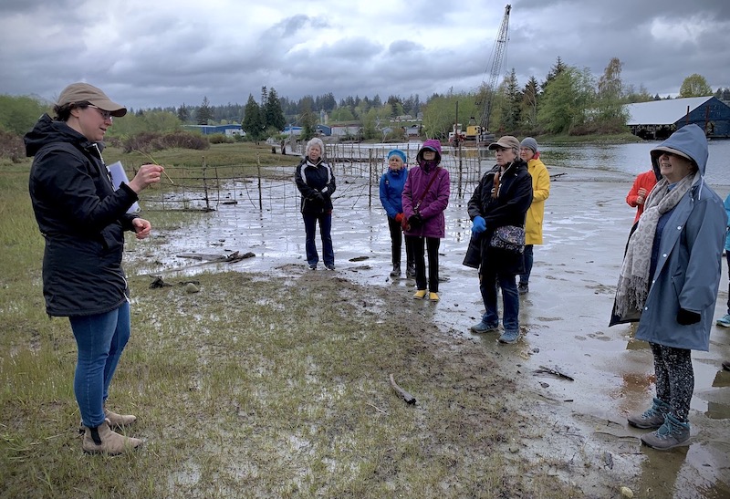 In response, the Wei Wai Kum Nation watchmen and the Guardians of the Mid-Island Estuaries Society are replanting the grasses and erecting woven sapling fences on marsh flats.