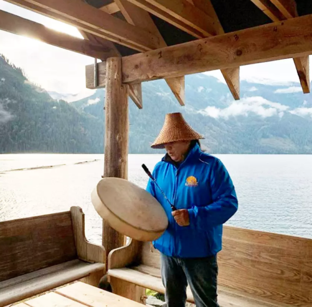 Guests are welcomed with a traditional Klahoose greeting. Photo courtesy of Klahoose Wilderness Resort.