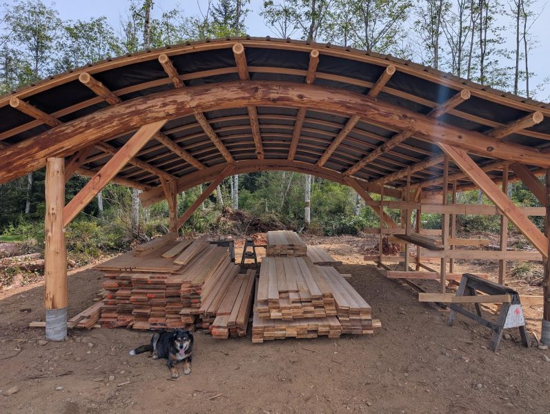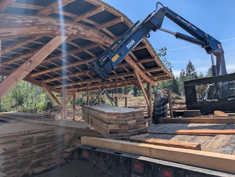 “We’ll be using some wood donated from Cortes Island. Now we’re going to go over to Ellingsen Woods Kiln and planer molder, and we’re going to be taking hemlock out of the kiln that Ron Wolda milled up for the Housing Society Project. The logs for that hemlock were donated by members of the community and by the community forest to go towards the project. Ron milled them up, we put them in the kiln, and then today they’re coming out of the kiln to go through the planer molder and they’ll be made into tongue and groove paneling that will be installed next week in the community building.”
