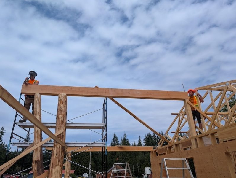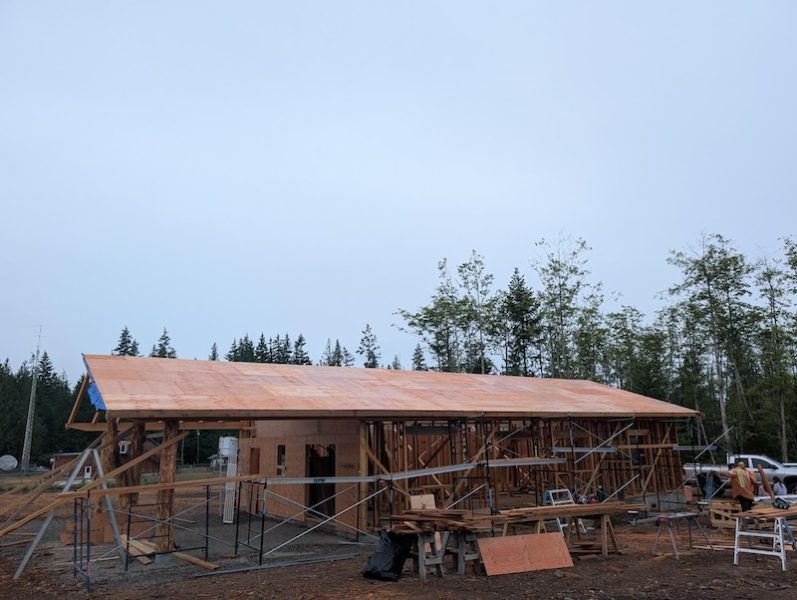 “With the ferry ramp limitation, we’re not able to bring trusses over so the buildings are designed to be able to frame them simply with dimensional lumber for ceiling joists and rafters.”