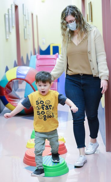 So when the Suh family, Joe and Tiffany,  relocated to the Okanagan in 2020, they enrolled “Huddy,” who is now four, at the OSNS Child and Youth Development Centre. There he underwent the life-changing, early intervention services including occupational and physiotherapy and speech pathology.