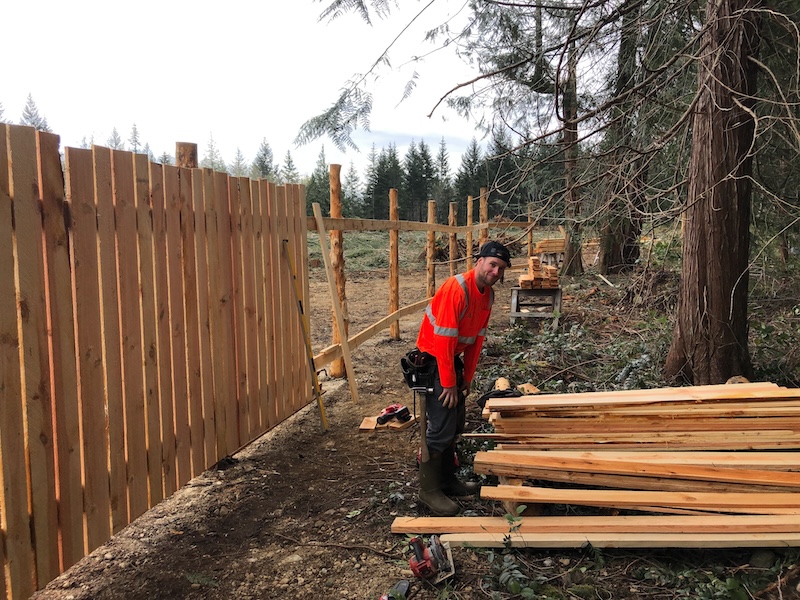 A block to the west of us, preparations for construction were taking place on the Cortes Housing Society’s premiere project. A four acre block had been carved out of the forest for the Rainbow Ridge Affordable Housing Project. Construction on the first building will soon commence. As we spoke, two carpenters were erecting a wooden fence on the project’s border with the Cortes Island Senior’s Village.