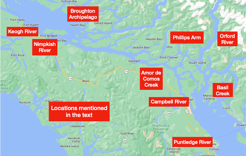 “The Nimpkish is an example where two years ago we didn’t see any Chum. The only Chum we saw were in the mouths of seals, they need to eat too. But this year we flew over and counted just under 3,000, maybe 2,500. So that’s pretty exciting.”