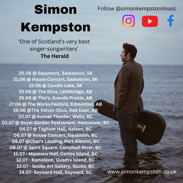 Simon Kempston: “No, I just hope that the good people of Cortes Island come along next Thursday. I’m very excited to be there for the first time and looking forward to presenting my songs and telling some stories in their beautiful hall.”
