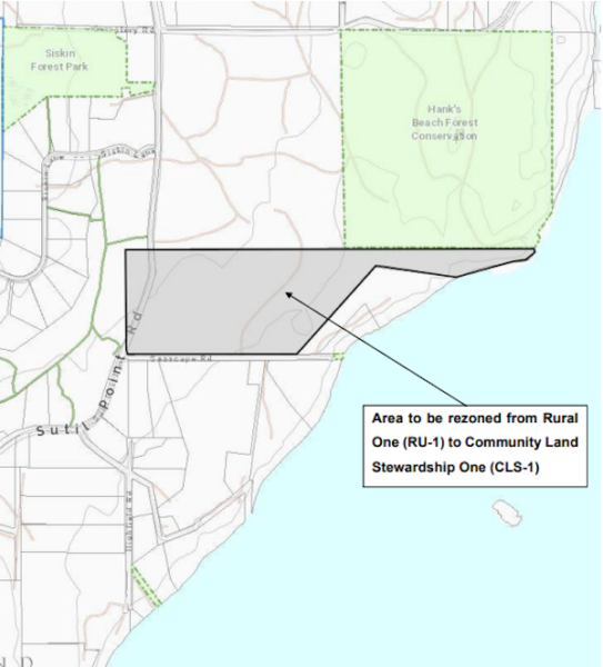 “And then under the community land stewardship designation specifically, in the OCP: The opening line states “consideration shall be given to applications which offer protection for sensitive natural areas, including foreshore safeguard, significant forest area.” And development of interior roads at a scale and design standard and keeping with the rural character of Cortes island.”