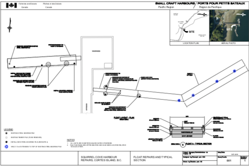 “The people they sent to check the floats did not see this because they were not here during the winter high tides. We asked them to weld a five foot extension to the tops of the pilings,” explained Harbour Authority Cortes Island Director Andy Ellingsen, who will be overseeing the contractors while Harbour Manager Jenny Hartwick is in Africa.