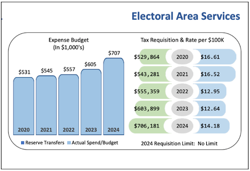 “For the SRD, the total levy breaks down to about $67 per capita. Much like the school act, that doesn’t necessarily mean everybody’s using the service. Unlike schools in the region, that serve about 5 % of the population, we’re serving about 33% for significantly less funding than schools,” he explained.